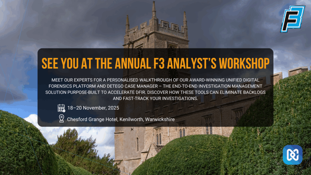 Join us at the F3 Analyst’s Workshop and discover how our award-winning Unified Digital Forensics Platform and Detego Case Manager can accelerate every stage of your investigations – from rapid evidence gathering to in-depth analysis and reporting.