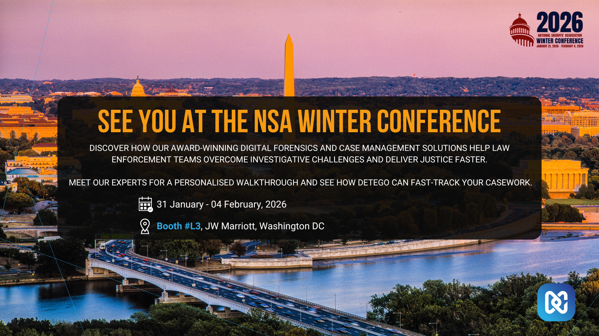 Discover how our award-winning digital forensics and end-to-end case management solutions help law enforcement teams tackle complex investigations. Meet our experts at the NSA Winter Conference to see how these tools accelerate casework from acquisition to court.